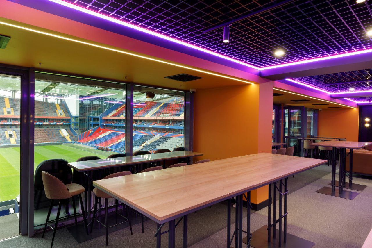 Компания Design Invest реализовала проект оформления VIP-ложи Lounge A на ВЭБ Арене в Москве. Пространство создано как премиальный интерьер для комфортного просмотра матчей и делового общения в приватной атмосфере.